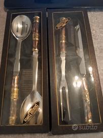 Posate di servizio : 2x insalate + 2 x taglio carni in rame /inox fatte artigianalmente a mano, lunghezza 30 cm. Perfette da regalare.