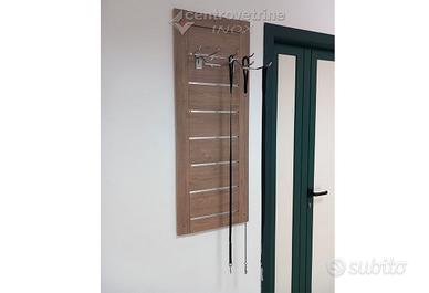 N° 1 PANNELLO DOGATO H.113 PASSO CM 15 PANNELLO IN MDF (MEDIUM DENSITY FIBREBOARD) È UN PANNELLO DI FIBRA DI LEGNO PRESSATA CON N° 7 BINARI IN ALLUMINIO SIMMETRICO AD ALTO SPESSORE 1,2 MM. RETRO PANNELLO DELLO STESSO COLORE DEL FRONTALE. COLORE LEGNO OLD WEST. DIM. 35 X 1,8 X 113 H.
