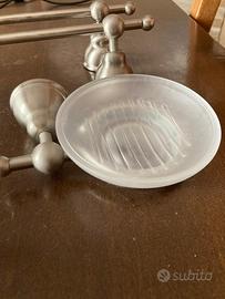 Kit accessori bagno. Acciaio e vetro satinato. Ottima fattura e stato di conservazione. 25€