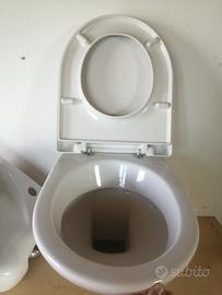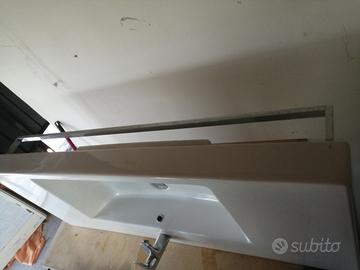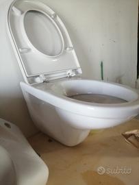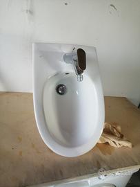 kit bagno lavandino sospeso misira 126cm largo e 50cm profondo. water buono stato bidet buono stato. SEGNI di usura su bidet e all angolo sotto del lavandino interno muro un po scheggiato.