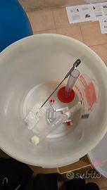 Vendo per inutilizzo kit da fermentazione birra fatta in casa con 47 bottiglie da 0,33. Usato 1 volta. Mancano i tappi a corona