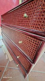 ✔ Comò a 4 cassetti con frontali in midollino e maniglie in ottone