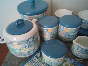 PREZZO RIBASSATO - OCCASIONE! Cedo completo da colazione per due che include: tazze da colazione con piatto, tazze da caffè con piattino, una teiera. Una biscottiera, un bricco per il latte, due barattoli medi e uno più piccolo (zuccheriera) e due tovagliette all'americana. TUTTO NUOVO E MAI USATO COMPELTO DI IMBALLO E SCATOLA COME DA FOTO. Ritiro a carico dell'acquirente in zona Padova Arcella