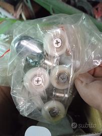 Carrellini universali per porta box doccia in cristallo e non, sia grigio , nero e bianco. Prodotto nuovo ed imballato ogni kit è di 4 carrellini, vendo per cessata attività di installazione e riparazione box doccia e vasche idromassaggio e mini piscine. ho altri ricambi di ogni genere. Contattatemi x SPEDISCO OPPURE CONSEGNA GRATIS A MANO a Genova. Modena e Parma province.