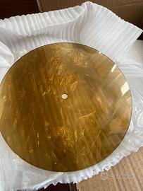 Sfera color opalino bianco, porta sfera ottone e disco color ambra.