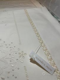 Kit lenzuola matrimoniale in cotone ricamato a mano mai usato, ancora nella confezione originale