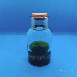 Questo kit comprende una sfera da 3/4 centimetri di Aegagropila linnaei (anche conosciuta come Marimo, alga a palla o Cladophora / Cladofora moss ball) dentro un piccolo vasetto in vetro e con pietrisco naturale come sabbia da fondale.