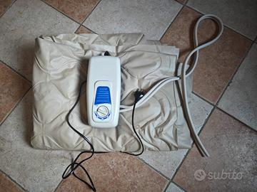 Kit composto da compressore con regolatore della pressione a ciclo alternato, sovra-materasso a bolle con rilascio d’aria con lembi di fissaggio. La differenza di pressione, alternata tra le file di bolle, consente la variazione costante dei punti di contatto corporeo sulla superficie e aiuta in questo modo alla prevenzione delle lesioni da decubito.