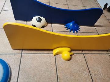 Vendo kit cameretta bambino composta da due mensole blu e gialle da 100x30cm e lampada con attacco E27.