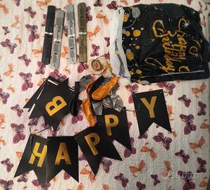 ✨ Kit di arredamento per feste di compleanno. 🎉 Colori moderni e accattivanti, ideale per decorare qualsiasi stanza per feste di compleanno di tutte le età. 🖌️Il Kit include: Festone con scritta "HAPPY BIRTHDAY" facilmente smontabile; 4 POM POM ("nidi d'ape di carta") decorativi in oro, argento e nero; Telo decorativo di compleanno; Set di palloncini neri, argento e arancioni con nastro dorato per legarli. 💎 Prodotto mai usato, venduto con scatola in perfette condizioni. 💸Prezzo trattabile, consegna a mano su Udine nord o spedizione con Posteitaliane.