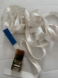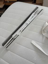 Kit composto da guida metallica regolabile per adattarsi a tutte le misure e nastro per fissarle assieme regolabile.