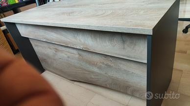 Scrivania con 3 cassetti nuova , ancora imballata e da assemblare, vendo per acquisto doppio, era destinata ad altra stanza poi modificato arredamento e non più necessaria. Quella in fotografia è la mia già assemblata , molto bella con effetto legno .