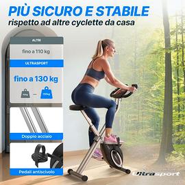 Ultrasport F-Bike Cyclette da Casa Pieghevole - Cyclette Pieghevole da Casa con Sella Extra Confortevole, Computer di Allenamento e Sensori delle Pulsazioni, Cyclette da Camera