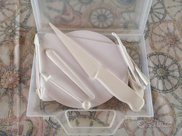Kit per la decorazione e la lavorazione della pasta di zucchero composto da 6 strumenti a doppia punta assortiti, 1 coltello e 2 raschietti. Il kit è completa di valigetta.