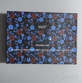 N. 2 piattini e n. 2 ciotoline decorate a rilievo. N. 2 appoggia posate. Si può mettere in lavastoviglie e in forno. Scatola originale. Pechino line. ideale come regalo di san valentino