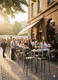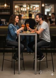 DIMENSIONI OTTIMALI: Tavolino 50x50x110 cm con piano d'appoggio quadrato, sgabelli alti 90 cm con seduta comoda 40x40 cm