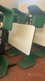 Vendiamo kit da mensa composto da 1 tavolo con 4 sedie integrate, in plastica resistente e struttura in metallo, ideale per: