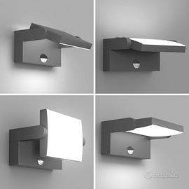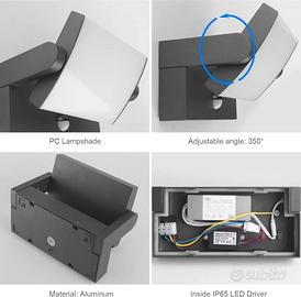 Klighten 24W LED Applique da Parete Esterno/Interno con Sensore di Movimento IP65, Lampade Moderno da Parete Orientabile in Alluminio per Giardini Balcone, Grigio Scuro, Bianco Freddo 5700K-6000K