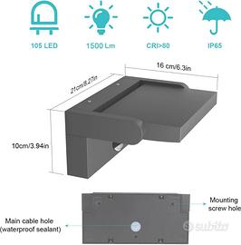 Klighten 24W LED Applique da Parete Esterno/Intern