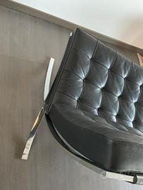 Seduta Barcelona prodotta tra gli anni ‘80 e ‘90. Lo si denota dal fatto che non è presente il marchio distintivo sul telaio in acciaio ma esclusivamente sulla tela nel retro della seduta (come da foto).
