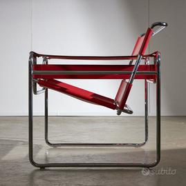 Knoll international Wassily, B3 un pezzo molto noto disegnato da Marcel Breuer. Questa sedia è disponibile in una finitura in cuoio rosso. La poltrona reca firma incisa sulla struttura, by KNOLL Studio. È in ECCELLENTI condizioni imbustata e inscatolata. La struttura è in acciaio inox a specchio cromato. Può essere un'aggiunta di spicco a qualsiasi spazio, sia in casa che in ufficio o in una galleria. Il suo stile unico e la sua storia la rendono un pezzo significativo da possedere. Per quei pochi eletti che la possono avere.