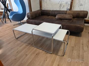 Coppia di Splendidi tavolini modello LACCIO di Marcel Lajos Breuer ( ) in Eccellente stato di conservazione. Manufatti di KNOLL International. Acciaio inox Mannessman e superfice dei piani in formica bianca. Visionabili presso nostro salone espositivo su appuntamento.