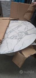 KNOLL tavolo rotondo TULIP Ø 120 cm collezione Eero Saarinen (Base bianca / piano Arabescato satinato - Marmo e alluminio) Piano: marmo bianco di carrara satinato dal diametro 120 cm. Base: disegno originale Saarinen in alluminio trattato e protetto con Rilsan. Senza graffi e crepe pari al nuovo. Dimensioni: Ø 120 cm H 72 cm Diametro della base Ø 50,8 cm Marmo = spessore 2 cm Logo Knoll è posizionato sotto la base. Una targhetta con il logo KnollStudio e la firma del designer sotto al piano come in foto. Possibilità di visionare.
