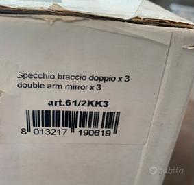 Mai installato e ancora in confezione originale, vendo specchio ingranditore x 3 da parete a doppio braccio con led della KOH-I-NOOR, articolo 61/2KK3.
