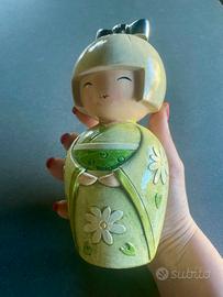Vendo bambola Kokeshi salvadanaio di colore verde, completa di scatola originale.