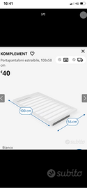 Vendo portapantoloni estraibile per armadio IKEA misura 100x58. Spacchettato e mai montato.