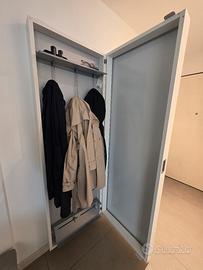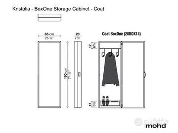 Il mobile appendiabiti a pareteBoxonediKristalia, disegnato daLuciano Bertoncini, è un sottile mobile a parete che unisce eleganza e praticità. La robusta struttura in alluminio anodizzato sostiene un frontale a specchio, che nasconde un interno organizzato con piccoli ganci, perfetto per tenere in ordine gli spazi ridotti. Le cerniere nascoste consentono all'anta di aprirsi ampiamente, pur mantenendo un aspetto pulito e liscio quando è chiusa. Condizioni: come nuovo Ritiro a mano o spedizione organizzata a carico acquirente.