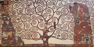 Riproduzione del famoso dipinto di Klimt L'albero della vita applicato su tavola delle dimensioni 100 x 50 cm