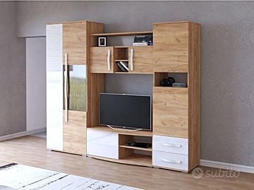 La parete attrezzata Nebraska è un set di mobili elegante e funzionale, perfetto per il soggiorno, che combina spazio di archiviazione ed estetica; è il set perfetto per un piccolo soggiorno o per un piccolo appartamento arredato in modo unico. La particolarissima nicchia TV aggiunge modernità, con piani semicircolari e frontale senza maniglia. Al momento dell’acquisto potrete apprezzare le maniglie angolate, che sono estremamente resistenti e allo stesso tempo sottolineano ulteriormente l’aspetto unico e originale di questa parete attrezzata. La parete attrezzata modello Nebraska, realizzata con materiali di qualità, è semplice da montare e non richiede l’impiego di tasselli per il fissaggio alla parete. Il peso di questa parete attrezzata è di ben 176 kg! EXCELLENT LINE – GARANZIA DI 2 ANNI COME DA NORMATIVA EUROPEA STRUTTURE INTERNE, SISTEMI DI ASSEMBLAGGIO E PARTI ESTERNE MOLTO RESISTENTI PRODOTTO ROBUSTISSIMO E DI ALTA QUALITÀ! Misure: lunghezza 240 cm – altezza 202 cm – profondità 52 cm – nicchia TV 106,8×80 cm Materiali robusti e di qualità: pannello laminato spesso 16 mm Maniglie in PVC bordi rifiniti completamente con impiallacciatura in PVC Pulizia: utilizzare acqua tiepida e detergenti neutri, usando panni delicati antigraffio. Asciugare tutto subito appena si è finito di pulire. Desideri ulteriori informazioni? Contattaci al numero (anche WhatsApp), siamo a tua disposizione!