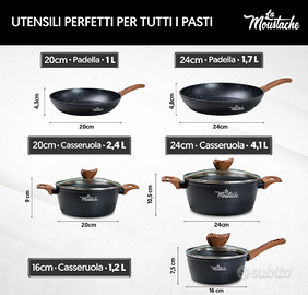🔥 {Compatibilità universale} La nostra batteria è adatta a tutti i tipi di fornelli, compresi quelli a induzione, a gas, elettrici e in vetroceramica, garantendo prestazioni ottimali su tutti i piani cottura. Inoltre è privo di PFOA, PFOS, piombo e cadmio.
