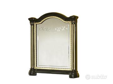 Finiture di Prestigio: la combinazione di un intenso color nero con i dettagli dorati applicati sui profili e sulle decorazioni frontali offre un contrasto caldo e lussuoso, tipico dell’arredamento di alta classe.