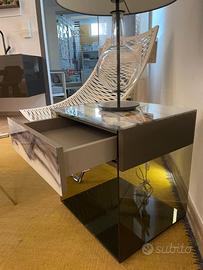 Il Comodino Upglass LAGO è il comodino in vetro che dona eleganza alla camera da letto, libero dal fissaggio a parete e comodo per lo spostamento.