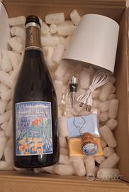 Lampada artigianale ricaricabile realizzata con una bottiglia vuota di Champagne Laherte Fréres con 3 intensità di luce. Incluso cavo per ricaricare e portachiavi-tappo. Prezzo finale