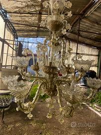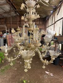 Vendo lampadario di Murano, vetro oro, altezza 1 m larghezza 1 m molto bello Al lampadario mancano quattro petali