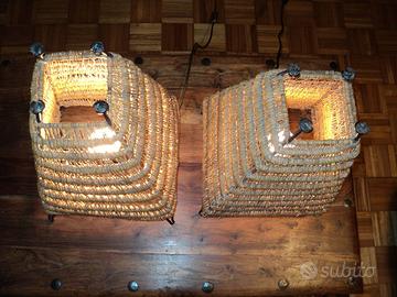 Coppia di lampade etniche da tavolo/comodino struttura in ferro battuto. Altezza cm 46 base cm 48x48.