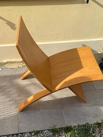 Poltrona scultorea è il modello Laminex, un'icona del design scandinavo progettata da Jens Nielsen nel 1966 per il produttore norvegese Westnofa.Caratteristiche PrincipaliDesign Innovativo: La sedia è composta da soli due pannelli di multistrato di faggio curvato che si incastrano perfettamente senza l'uso di viti o bulloni.Funzionalità: È progettata per essere facilmente smontata in due pezzi piatti, rendendola semplice da trasportare o riporre.Materiali: Realizzata solitamente in multistrato di faggio o betulla, talvolta accompagnata da cuscini in pelle o tessuto.Dettagli TecniciCaratteristicaDimensioni ApprossimativeAltezza70 - 74 cmLarghezza54 cmProfondità74 - 75 cmAltezza Seduta35 cmEssendo un pezzo vintage molto ricercato, i prezzi possono variare significativamente a seconda delle condizioni e del rivenditore, con quotazioni che possono superare i 1.500 € per coppia.