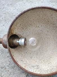 vendo una lampada da ufficio in ferro decapato con interruttore sullo stelo e con la parabola a forma semisferica. Tutto funzionante compresa la sua lampadina originale. Non ha supporto a morsetto. Ciascuno può inventarsi una base dove inserire lo stelo