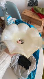 lampada a fazzoletto anni 30, per la parte contenente la lampadina e invece la struttura anni 90 in ceramica con carrucola che regola altezza l'ultima foto è per vedere la lampada montata ma non è quella la lampada ritiro zona milano