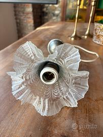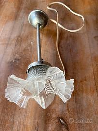 Lampadario a sospensione dal design vintage, con dettagli in vetro lavorato e finiture metalliche.