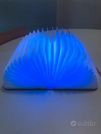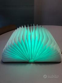 Lampada a forma di libro, in legno, ogni volta che la si apre la luce si accende di un colore diverso a scelta tra bianco, verde, rosso, blu, molto delicati. Consegna a mano a Milano in zone da concordare oppure spedizione.