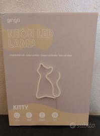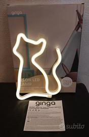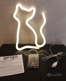Lampada a LED al neon a forma di gatto Dimensioni 17x23cm Alimentazione batterie o usb Nuova mai usata