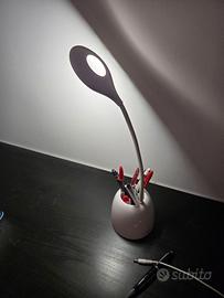 Come da foto vendo questa praticissima lampada a LED bianchi da scrivania con porta penne integrato. L'intensità della luminosità è regolabile. Può essere usata in corrente, collegata ad un Computer mediante cavo USB in dotazione oppure senza alcun cavo dopo aver caricato la batteria interna utilizzandola in modalità lampada portatile. Pratica, semplice e molto comoda!