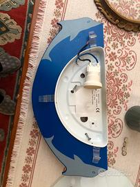 lampada a muro Applique E27 con vetro smerigliato e delfini azzurri.