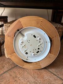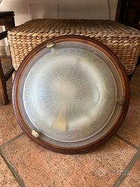 Lampada a muro, rotonda, base legno, vetro leggermente opaco con decorazioni. Ottime condizioni