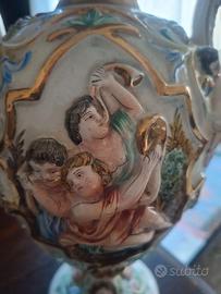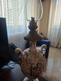 Lampada a Olio Antica in Porcellana di Capodimonte