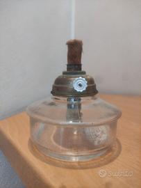 Lampada a olio d'epoca in vetro, diametro 10 cm e altezza 10 cm con stoppino spesso in tessuto.